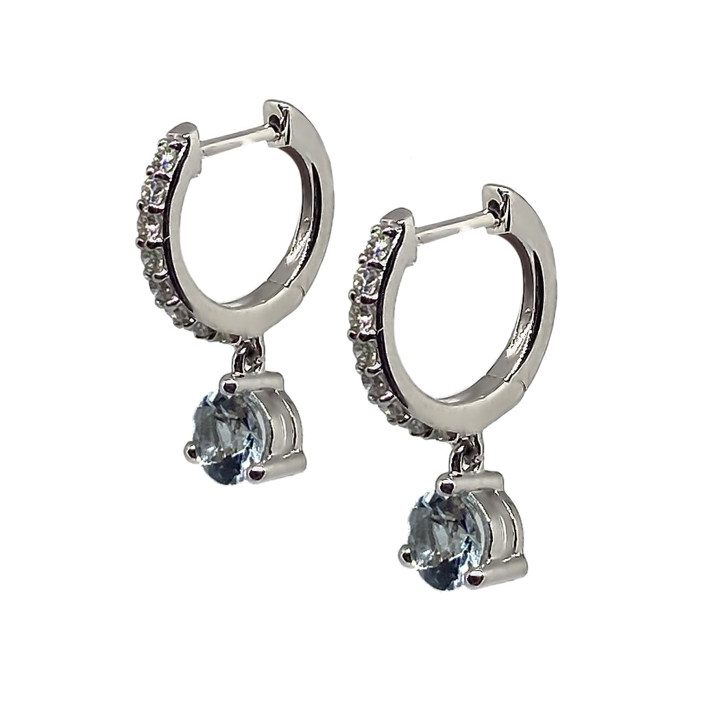 Featuring a unique hoop closure and studded with 8 diamonds and a 5mm Aquamarine drop. (Total length 2cm)