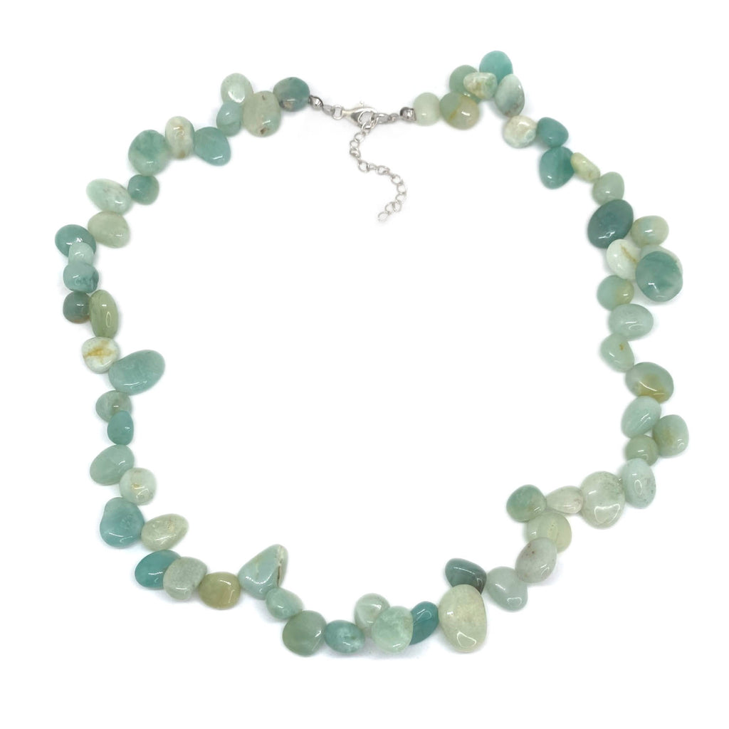 This pretty blue green semi-precious gemstone is said to be a calming stone, helping to keep the body and mind in balance. Its aqua tones flatter all skin types and goes surprisingly well with many colours in your wardrobe, even pink and red.
