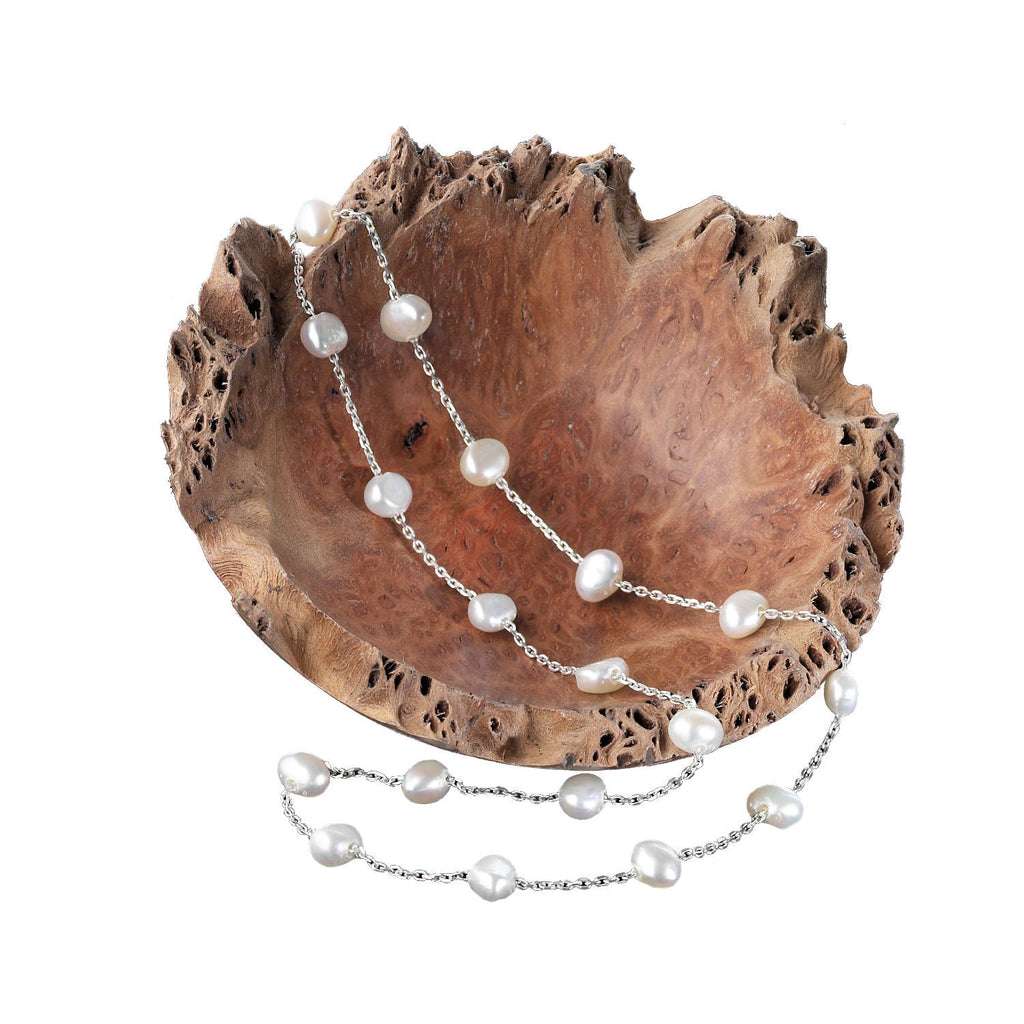 These beautiful freshwater cultured pearl necklace give a contemporary twist to a traditional favourite, combining the natural beauty of pearls with solid sterling silver.